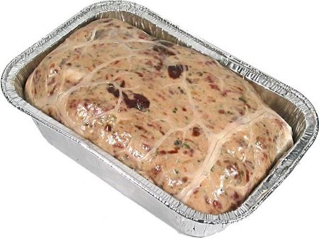 "Echter" Leberkäse mit grober Fleischeinlage, kleinen Leberstückchen und Majoran. Herzhaft gewürzt.